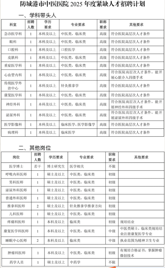 (二)具體招聘辦法由防城港市中醫(yī)醫(yī)院人事科負責解釋。