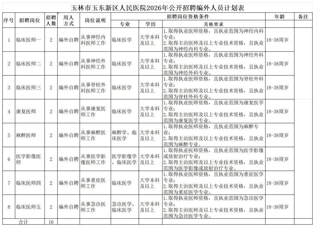 (1)《玉林市玉東新區(qū)人民醫(yī)院2026年公開招聘編外工作人員報名登記表》(附件),所填寫信息必須真實無誤,凡弄虛作假的,一律取消報名資格;