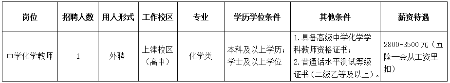 根據(jù)學(xué)校工作需要,南寧市第十中學(xué)上津校區(qū)(高中部)面向社會(huì)招聘教職工,具體崗位如下: